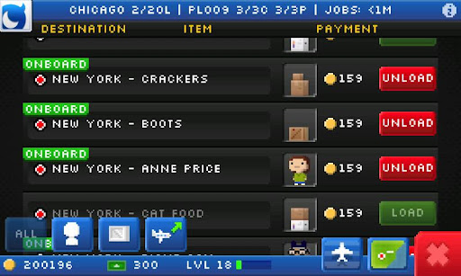 不過常常飛機飛到目的地卻沒人可載,每4分鐘重loading job (等等等阿) 可用bux重整 (浪費) 卻又不一定重整就有或可以載 哈~~